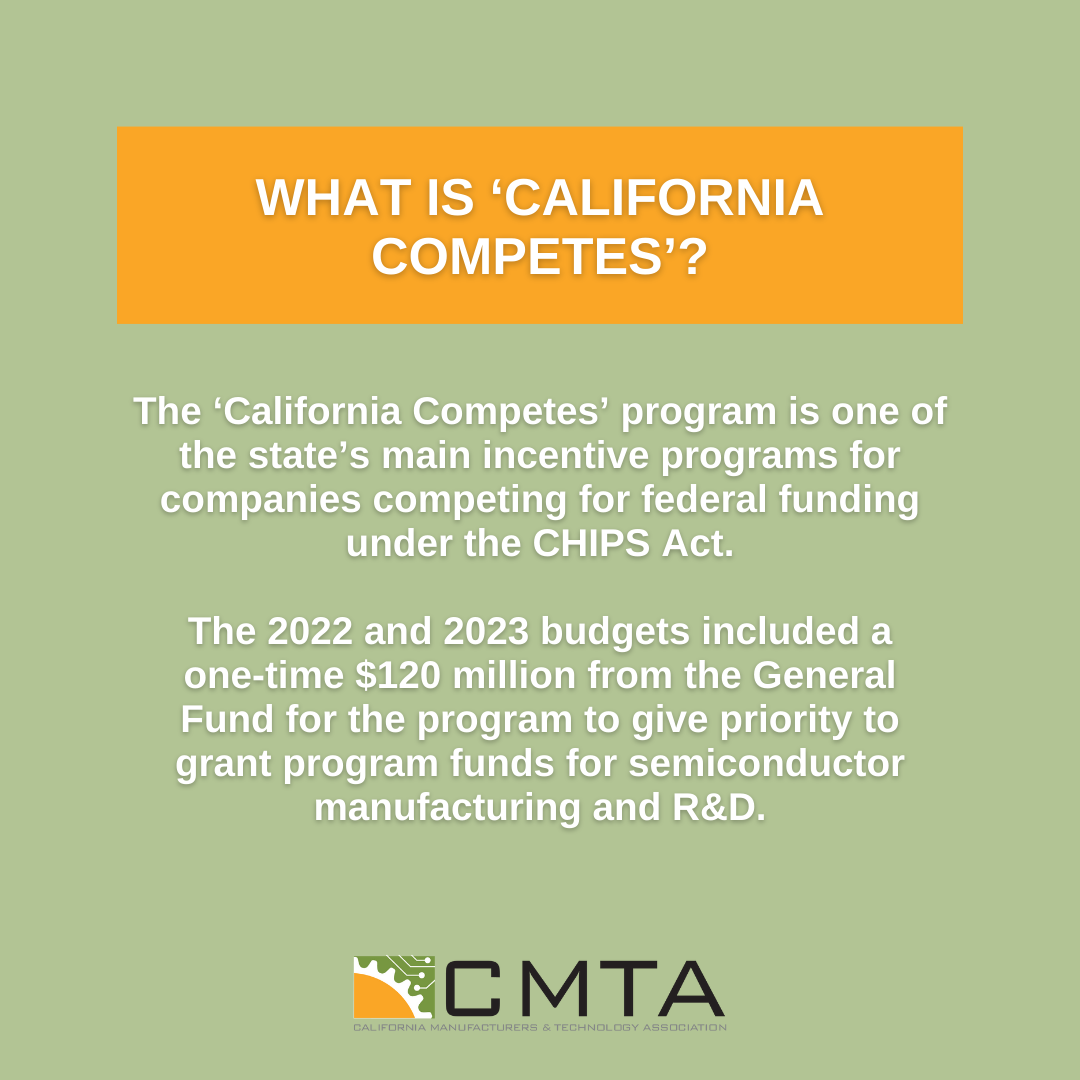 The California Manufacturers & Technology Association has advocated for pro-growth laws and regulations before the California legislature and administrative agencies since 1918. The total output from manufacturing in California is $300 billion per year, roughly 10 percent of the total economic output of the state. Manufacturers employ 1.3 million Californians paying wages more than $25,000 higher than other non-farm employers in the state. For more information, visit CMTA’s website.